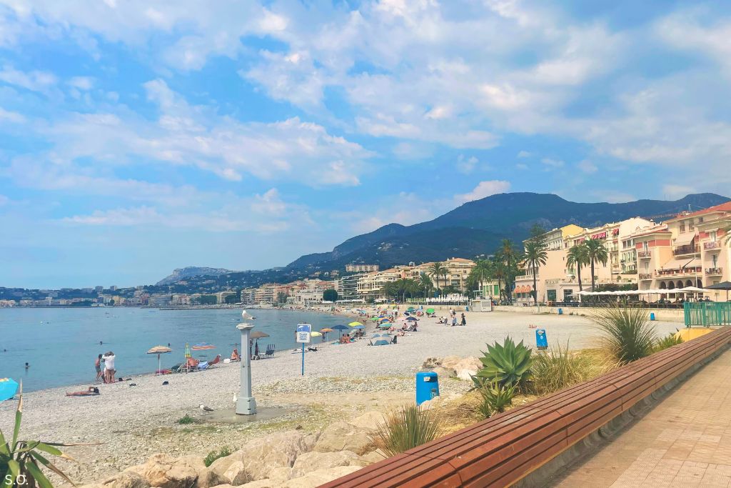 Sablettes beach, Plage des Sablettes, is Menton’s most iconic beach. Nestled between the colorful Old Town and the peaceful Mediterranean Sea, with its soft pebbles, crystal-clear waters, and breathtaking views of the surrounding hills, Plage des Sablettes offers the perfect spot to relax and soak in the beauty of the French Riviera.